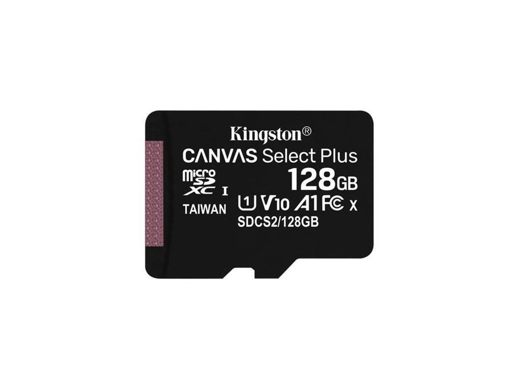 KINGSTON 128GB microSDXC CANVAS Plus Memory Card 150MB/s Read, UHS-I Speed Class, U1, V10, A1 - bez adaptéru