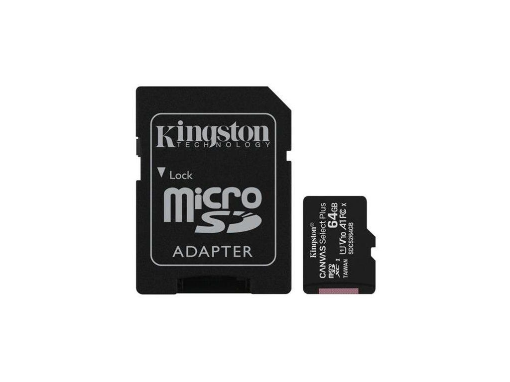 Kingston's Canvas Select Plus microSD card offers reliable performance, compatible with Android devices and cameras, with speeds up to 150MB/s*. With A1 app performance, it ensures smooth multitasking and fast load times. Durable and versatile, it's perfect for everyday storage needs. Kingston's Canvas Select Plus microSD is compatible with Android devices and designed with enhanced A1-rated performance. It offers reliable speed and large capacities for faster app loads and capturing images and videos in capacities up to 1TB**. Powerful in performance, speed, and durability, the Canvas Select Plus microSD is designed for reliability so you can take it anywhere with confidence that your photos, videos, and files will be protected. Available with a lifetime warranty. FEATURES Impressive speeds - Incredible read speeds up to 150MB/s.* Optimized for use with Android devices - Enhanced Android A1 Performance Class. Large capacities - Capacities up to 1TB** to store your photos and files. Durable - For peace of mind, cards are extensively tested and proven to be waterproof, temperature proof, and X-ray proof.*** SPECIFICATIONS Capacities** 64GB, 128GB, 256GB, 512GB, 1TB Standard/Class Class 10, UHS-I, U1/U3, Video Class 10/30, A1 Performance* 100MB/s Read, UHS-I Speed Class, U1, V10, A1 (64GB) 150MB/s Read, UHS-I Speed Class, U1, V10, A1 (128GB-256GB) 150MB/s Read, UHS-I Speed Class, U3, V30, A1 (512GB-1TB) microSDXC card dimensions 11mm x 15mm x 1mm SD adapter dimensions 24mm x 32mm x 2.1mm Format exFAT Operating temperature -25°C~85°C Storage temperature -40°C~85°C Voltage 3.3V Warranty/support Lifetime PART NUMBERS SD Adapter Included SDCS3/64GB SDCS3/128GB SDCS3/256GB SDCS3/512GB SDCS3/1TB SD Adapter Not Included SDCS3/64GBSP SDCS3/128GBSP SDCS3/256GBSP SDCS3/512GBSP SDCS3/1TBSP * Based on internal testing, performance will vary based on host device. Engineered with proprietary technology to reach read speeds beyond UHS-I 104MB/s specification, up to 150MB/s. Write speed may be lower for some capacities. Full performance requires MobileLite Plus Reader. ** Some of the listed capacity on a Flash storage device is used for formatting and other functions and thus is not available for data storage. As such, the actual available capacity for data storage is less than what is listed on the products. For more information, go to Kingston's Flash Memory Guide at kingston.com/flashguide. *** IEC/EN 60529 IPX7 certified for protection against continual water submersion up to 30 minutes and depth up to 1m. Withstands temperature range from -25°C to 85°C. Protected against X-ray exposure based on ISO7816-1 guidelines.Kód produktu: SWSKNG00065