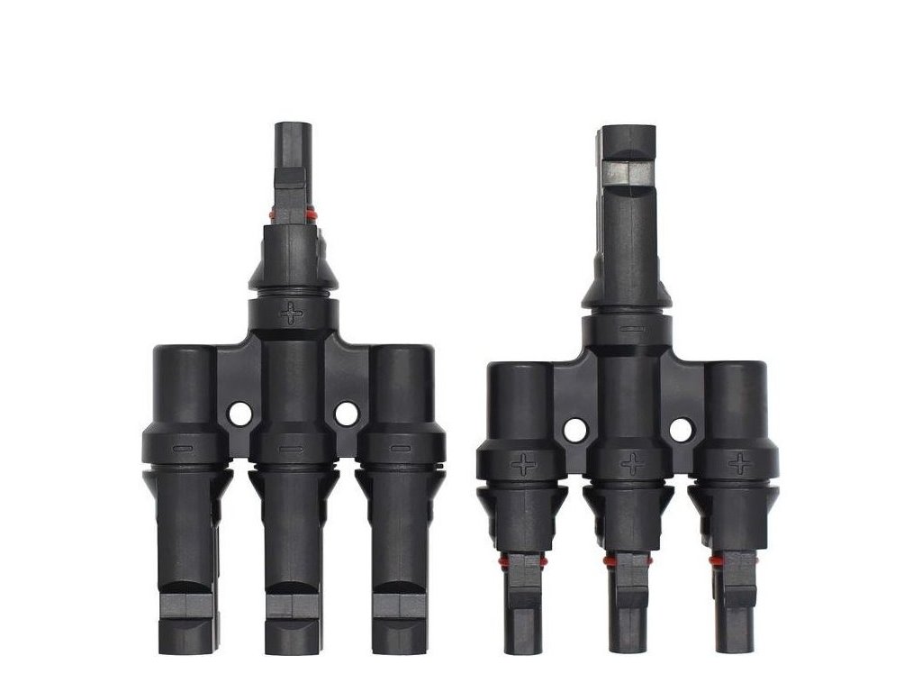 Rozbočovací konektor je vyroben z vysoce pevnostního plastu a je opatřen gumovými těsnícími vložkami. Používá se k paralelnímu propojení 3 solárních panelů.