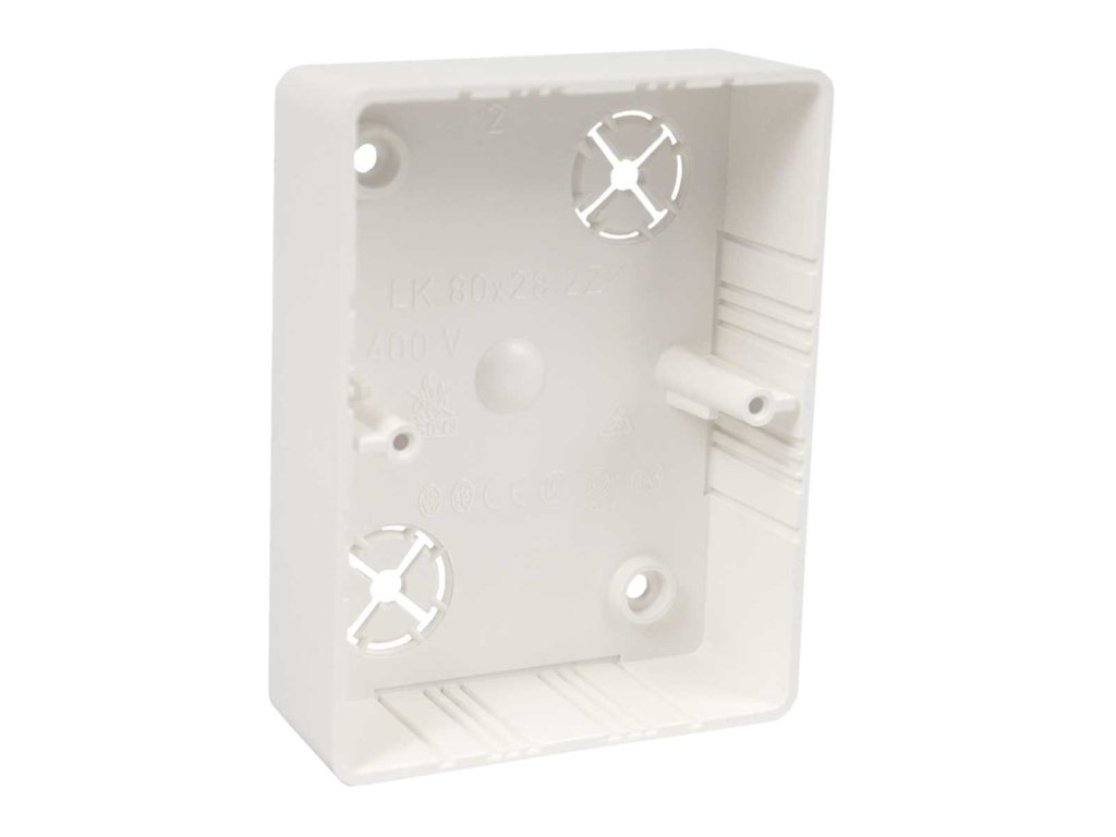 LK 80X28 2ZK - KRABICE LIŠTOVÁ, konfigurace HB, barva SUPERBÍLÁ/RAL9003. Určené pro dvouzásuvky modelové řady Classic nebo Swing.