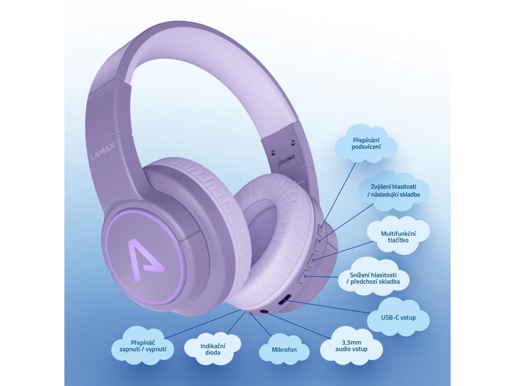 Hravé LED podsvícení promění každý poslech v barevný zážitek. Sluchátka se rozzáří při hudbě a okamžitě upoutají pozornost. Přitom však zůstávají maximálně pohodlná a bezpečná. Měkké náušníky netlačí ani při delším nošení a hlasitost je nastavena tak, aby byla šetrná k dětskému sluchu.