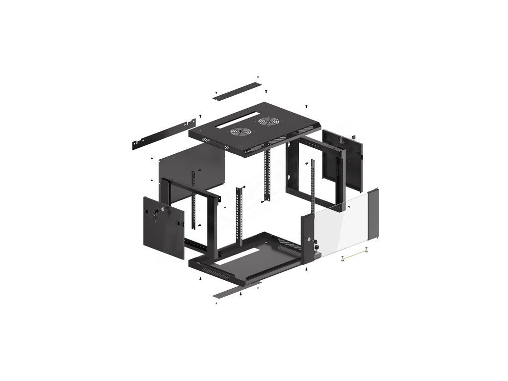 LANBERG RACK CABINET 19” WALL-MOUNT 6U/600X450 (FLAT PACK) V2 BLACK Nástěnná jednodílná skříň Lanberg WF01-6406-10B je řešení určené pro rozšíření sítí, instalaci kabeláže a zařízení o velikosti 19” s max. 60 kg. nosnost. Lze jej použít v sítích, serverovnách, malých a středních firmách. Může také pracovat v systémech nízkého napětí, jako jsou sítě kabelové televize, poplašné systémy, systémy požární ochrany a systémy kontroly přístupu, CCTV a IP dohled. Vhodný design umožňuje jednoduchou, svépomocnou montáž. Skříň se vyznačuje stupněm krytí IP20, otevírací přední dvířka s možností otočení o 180° se zámkem, odnímatelné bočnice (zámky součástí dodávky). Skříň má na horním a spodním krytu panel pro vstup kabelů. Tento výrobek je vyroben z vysoce kvalitní oceli válcované za studena. Konstrukce skříně pro vlastní montáž je v plochém obalu, což usnadňuje přepravu. Balení navíc obsahuje další příslušenství pro držáky na kolejnice, klecové matice M6 a prázdné vstupní panely. Vlastnosti (WF01 V2): - Výrobce: Lanberg, - Kód výrobce: WF01-6406-10B, - Typ skříně: Držák na stěnu, - Barva těla: Černá RAL9004, - výška: 6U, - Rozměry skříně (Š x H x V): 600x450x379 mm, - Výška (horní panel - spodní panel): 370,5 mm, - Výška (horní panel - broušený včetně šroubů): 379 mm, - Vnitřní šířka rozteče mezi kolejnicemi: 450 mm, - Šířka rozteče mezi otvory regálových kolejnic: 475 mm, - Rozteč vnější šířky mezi kolejnicemi stojanu: 495 mm, - Nosnost: max. 60 kg, - Stupeň krytí: IP20, - Typ dveří: tvrzené sklo, - Norma: ANSI/EIA RS-310-D, IEC297-2, DIN41494; ČÁST 1 A ČÁST 7, ETSI, - Materiál: Vysoce kvalitní ocel válcovaná za studena, práškově lakovaná, - Montážní sloty ventilátoru: Ano, 120 mm, 110 V nebo 230 V, - Tloušťka skla: 5,0 mm, - Tloušťka plechu: vertikální montážní lišty - 1,50 mm; montážní profil - 1,50 mm; ostatní - 1,00 ~ 1,20 mm; horní a spodní a boční panel - 1,00 mm, - Panel pro vstup kabelů: nahoře, dole, - V ceně: taška na příslušenství, zemnící sada (kolíky, zemnící kabel, matice a montážní podložky), zámek předních dveří, dva boční panely se zámky, 12 klecových matic M6.Kód produktu: SWS530632