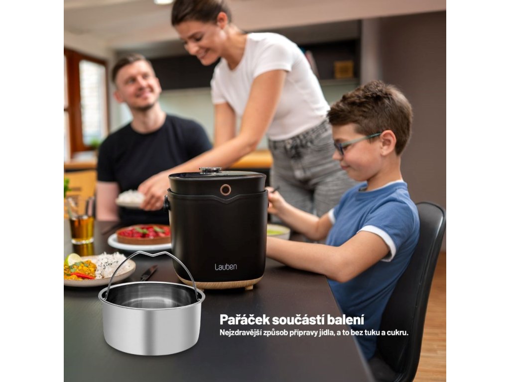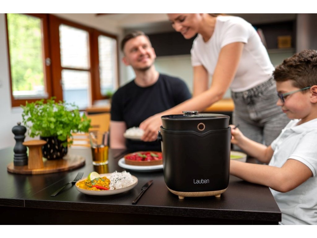 Proměnit vaření v zábavu, která navíc zabere minimum času, je nyní díky Lauben Multifunction Rice Cooker 2000BW jednodušší než kdy dřív. Víceúčelový rýžovar s keramickým nepřilnavým povrchem vnitřního hrnce o objemu 2 l se stane dokonalým pomocníkem na cestě ke zdravému životnímu stylu. Jeho 12 přednastavených programů si poradí s přípravou různých pokrmů, které i začátečník uvaří jako šéfkuchař. Za pomoci nerezového pařáčku pro dušení v páře můžete vařit ještě zdravěji, a to stiskem jediného tlačítka. Když vám však program nevyhovuje, pohodlně si vše nastavíte i manuálně. Manipulaci a ovládání usnadňuje praktické madlo, dotykový displej a technologie Cool Touch, která je zároveň bezpečnostním prvkem zabraňujícím popálení. Uživatelsky přívětivá údržba, kdy stačí vnitřní hrnec vložit do myčky, také uspoří spoustu času. Prémiový design s dřevěným dekorem ozdobí každý interiér.