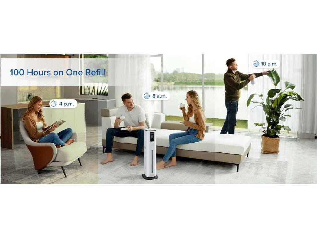 Levoit OasisMist Smart disponuje 10l nádobou na vodu a s výkonem 350ml/h hravě pokryje místnosti do velikosti až 55m2. Maximální doba provozu je až 100 hodin v závislosti na použitém programu zvlhčovače. Když voda dojde, zařízení se samo automaticky vypne, aby nedošlo k poškození a informuje vás také přes aplikaci v chytrém zařízení.