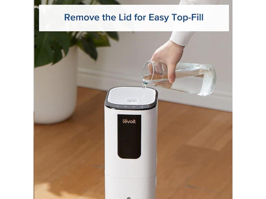 Inteligentní zvlhčovač vzduchu Levoit OasisMist Smart se plní velice pohodlně z vrchu. Je to praktické, protože tradiční zvlhčovače se plní zespodu a manipulace s nádobami je u nich docela trápení a stojí zbytečně moc času a nervů.