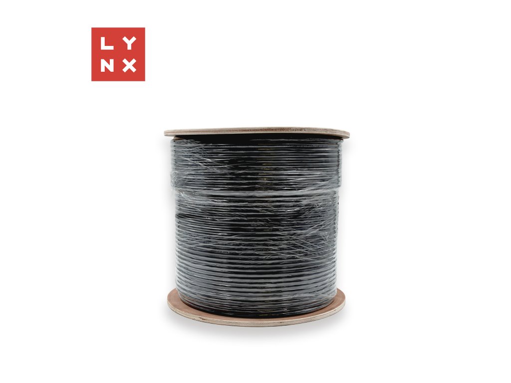 LYNX FTP kabel Cat6, PE (Fca), celoměděný, venkovní, černý, cívka 305m