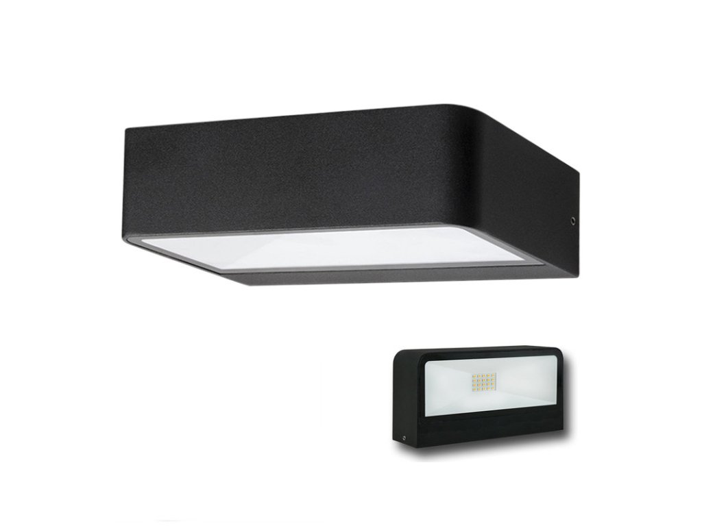 LED nástěnné a fasádní svítidlo Cygnus, černá barva, 8W, 230V, IP65, teplá bílá (3000K), světelný tok 415lm, vyzařovací úhel 104° - svítí do dvou směrů, CRI 80, životnost až 30.000h, rozměry 200 x 103 x 55, materiál hliník/sklo, nestmívatelné.Kód produktu: 11.288.683