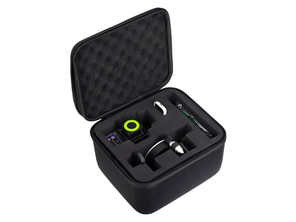 Nivelační přístroj je připravený na pracovní prostředí a zátěž. Odolá prachu, vysokým a nízkým teplotám a nevadí mu, když ho postříkáte vodou. Pokud vlastníte stativ se standardním závitem, jednoduše na něj přístroj uchytíte a nakloníte ho. Dosáhnete tím ideálního úhlu paprsků.