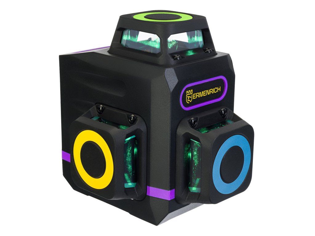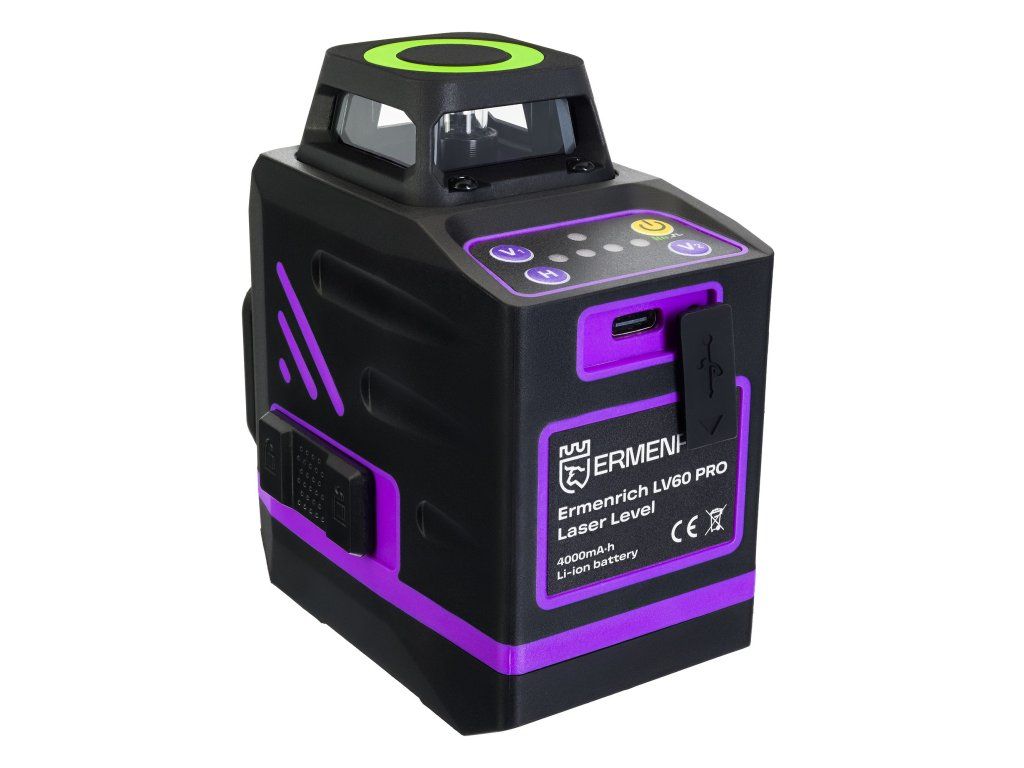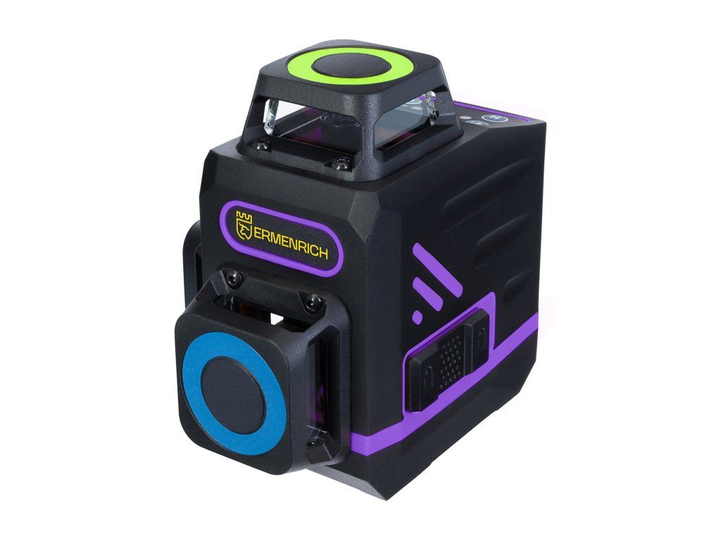 Nivelační přístroj Ermenrich LV60 PRO až 30m, zelený laser, 12 čar, fialový