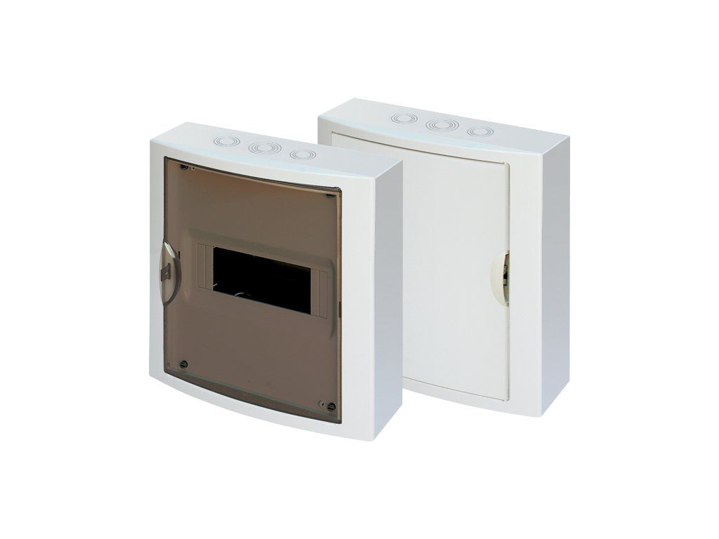 pro nástěnnou montáž, průhledné dveře, počet řad 1, počet modulů v řadě 8, krytí IP40, PE+N, barva bílá, materiál : plastKód produktu: 10.716.974