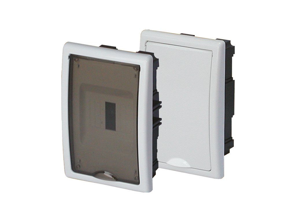 pro zapuštěnou montáž, neprůhledné dveře, otevírání nahoru, počet řad 1, počet modulů v řadě 4, krytí IP40, PE+N, barva bílá, materiál : plast
