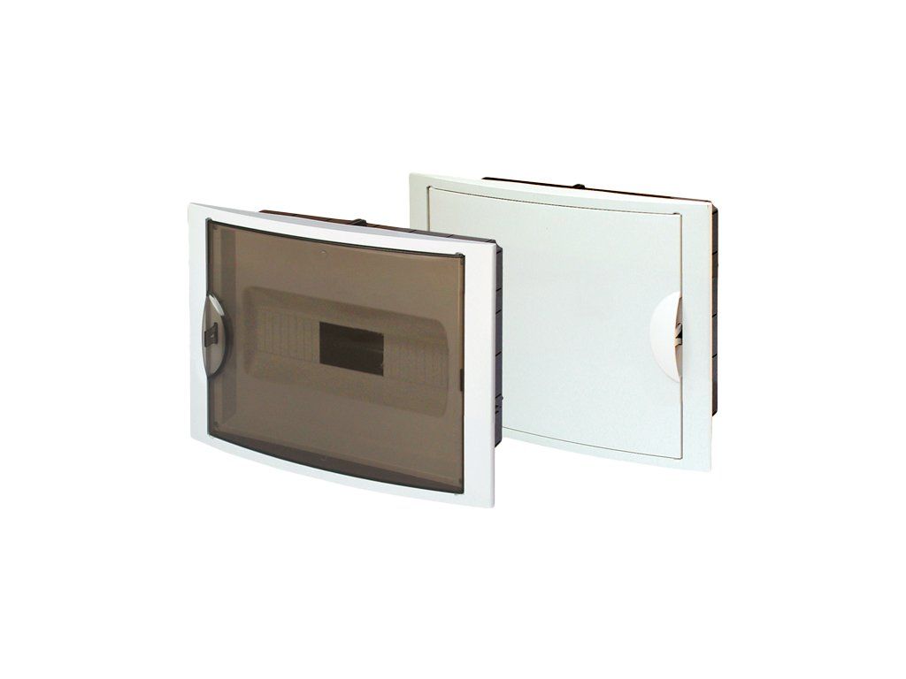 pro zapuštěnou montáž, průhledné dveře, počet řad 1, počet modulů v řadě 14, krytí IP40, PE+N, barva bílá, materiál : plast