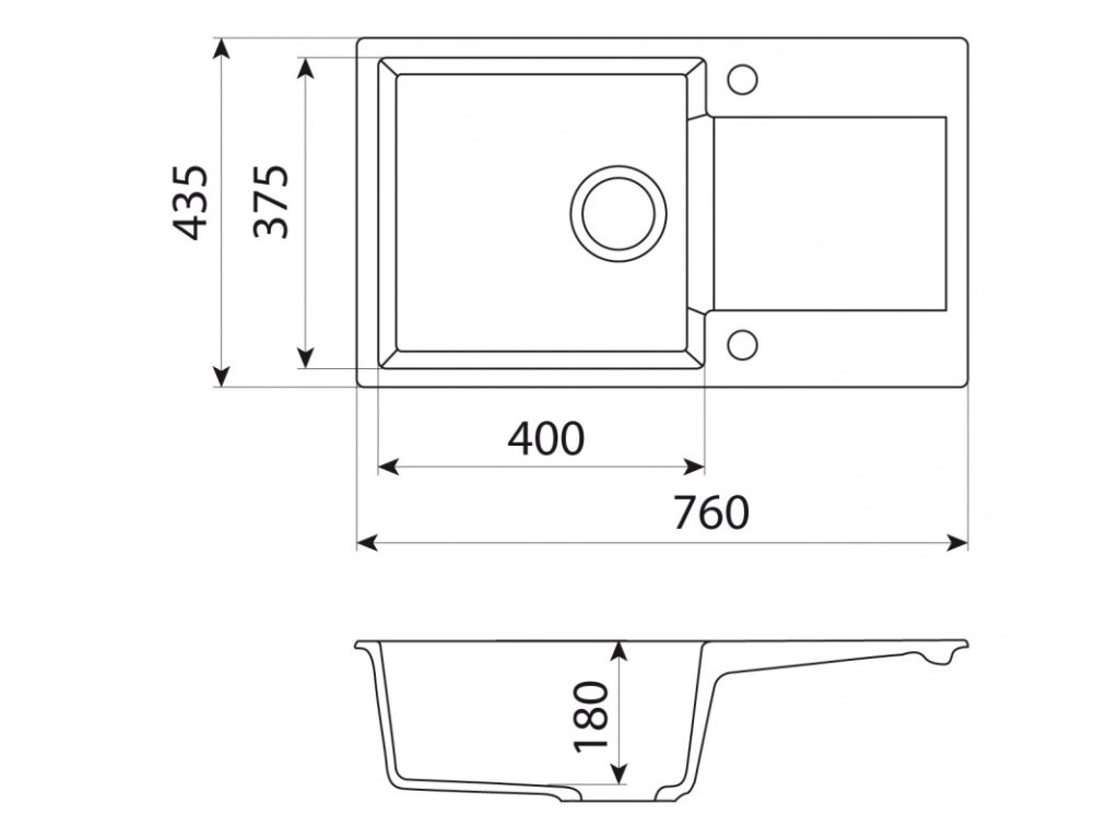 Vanička o hloubce 18 cm je dostatečná pro pohodlné mytí většiny nádobí. Praktický odkap využijete pro odkládání nádobí, zeleniny při čištění nebo rozmrazování potravin. Do dřezu vám na požádání zdarma vyvrtáme další otvory pro dávkovač saponátu nebo ovládání drtiče. Montáž dřezu se provádí shora, minimální šířka skříňky je 60 cm.