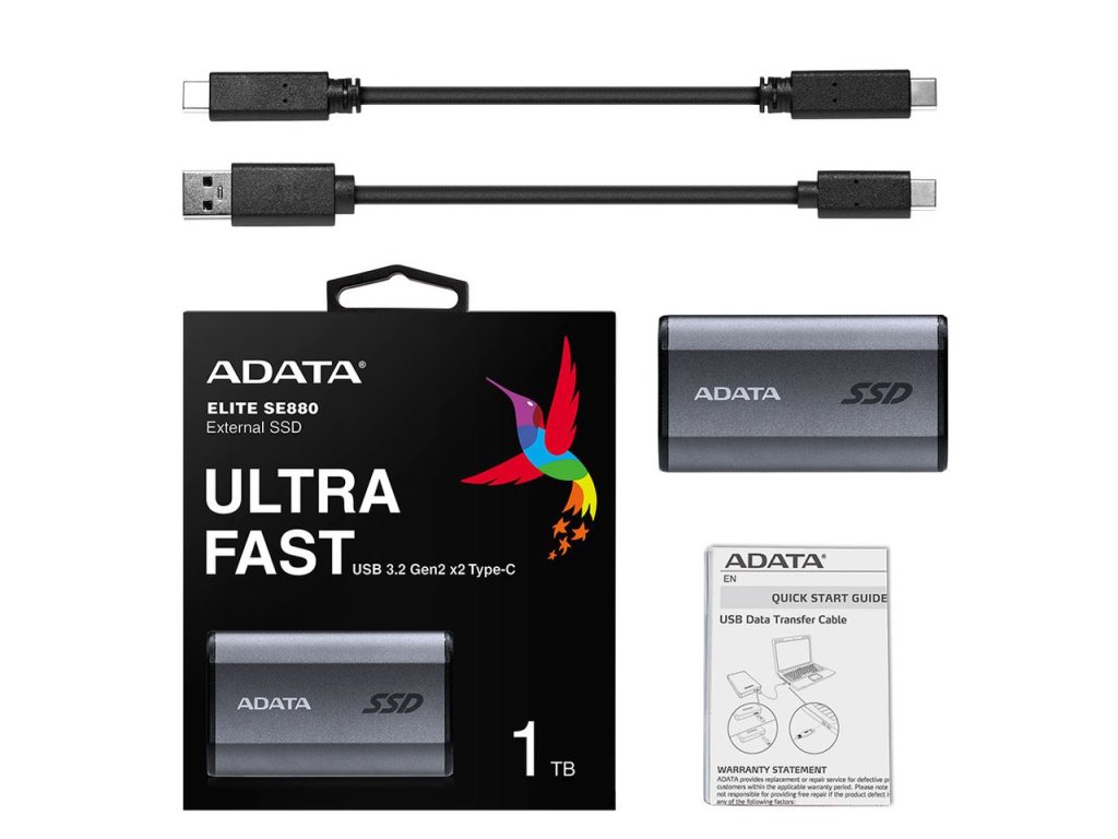 ADATA Externí SSD 1TB SE880, USB-C 3.2 Gen 2x2, R:2000/W:2000MB/s, šedá