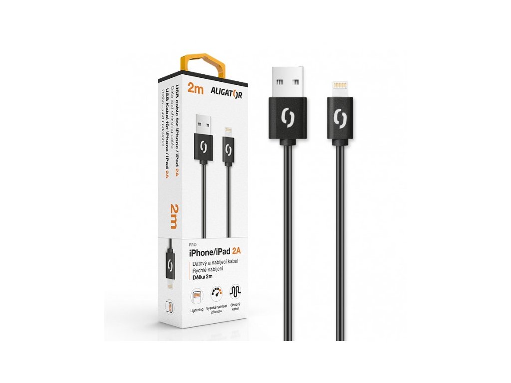 ALIGATOR Datový kabel 2A iPh lightning 2m, černý