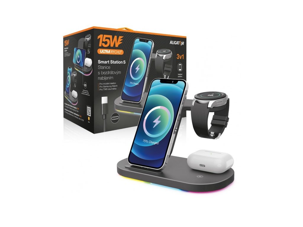 Aligator Stanice Smart Station S s bezdrátovým nabíjením 3v1, 15W