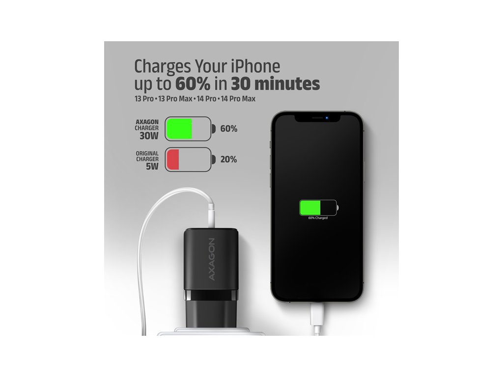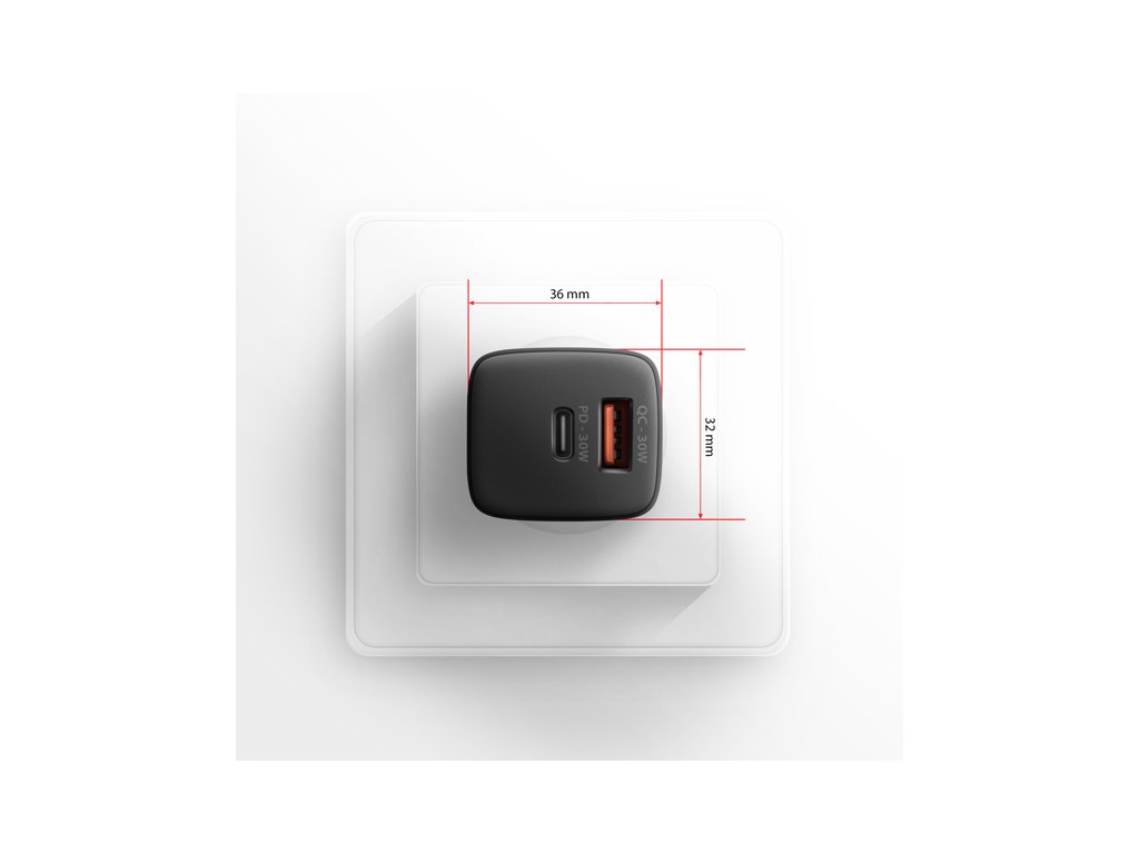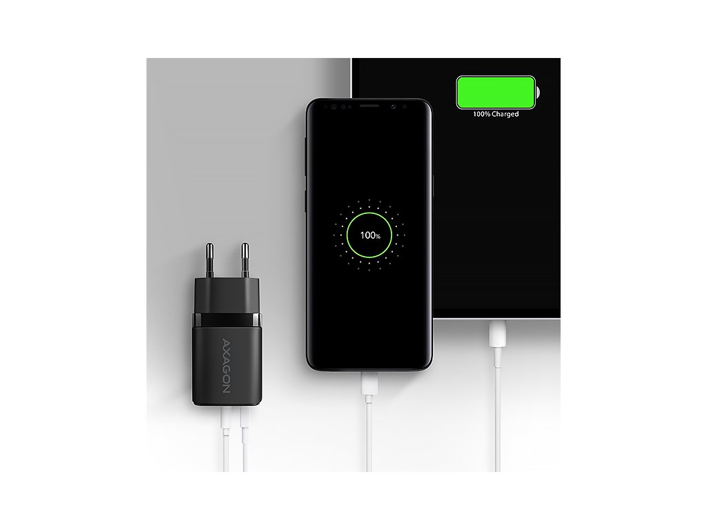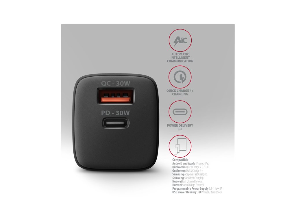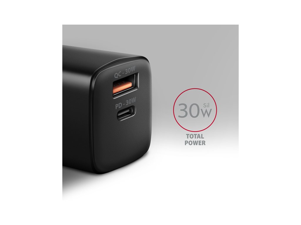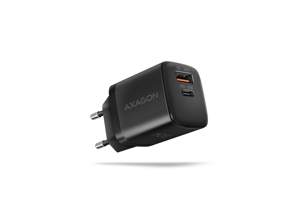 AXAGON ACU-PQ30, Sil nabíječka do sítě 30W, 2x port (USB-A + USB-C), PD3.0/PPS/QC4+/SFC/AFC/Apple, černá
