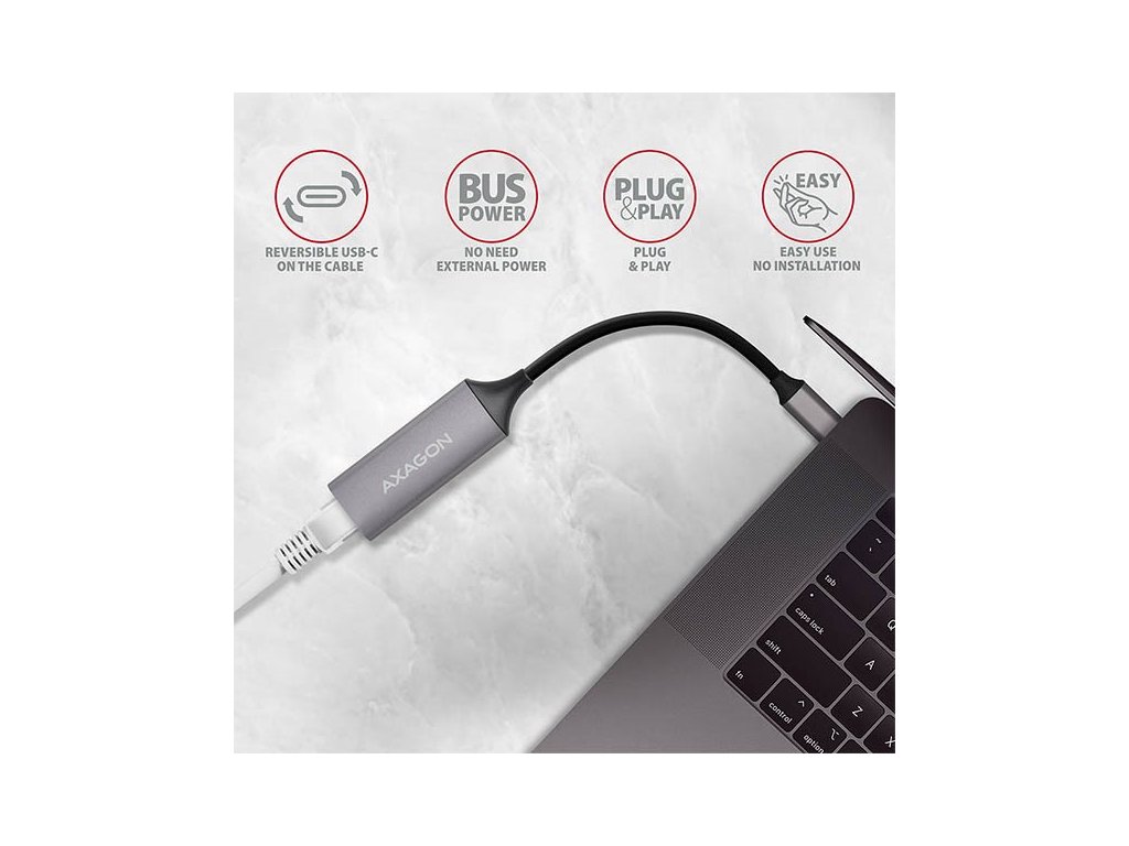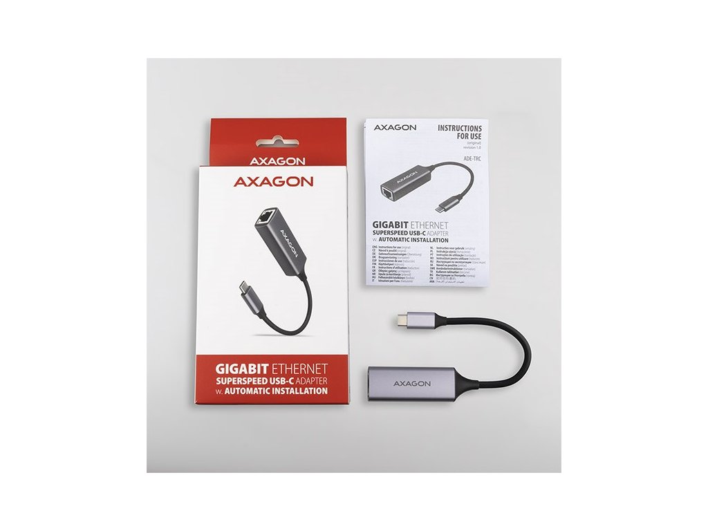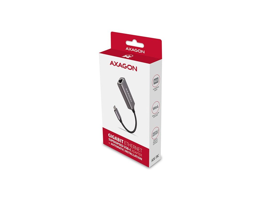 AXAGON ADE-TRC, USB-C 3.2 Gen 1 - Gigabit Ethernet síťová karta, auto instal, titanově šedá