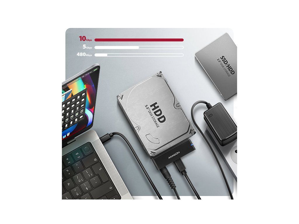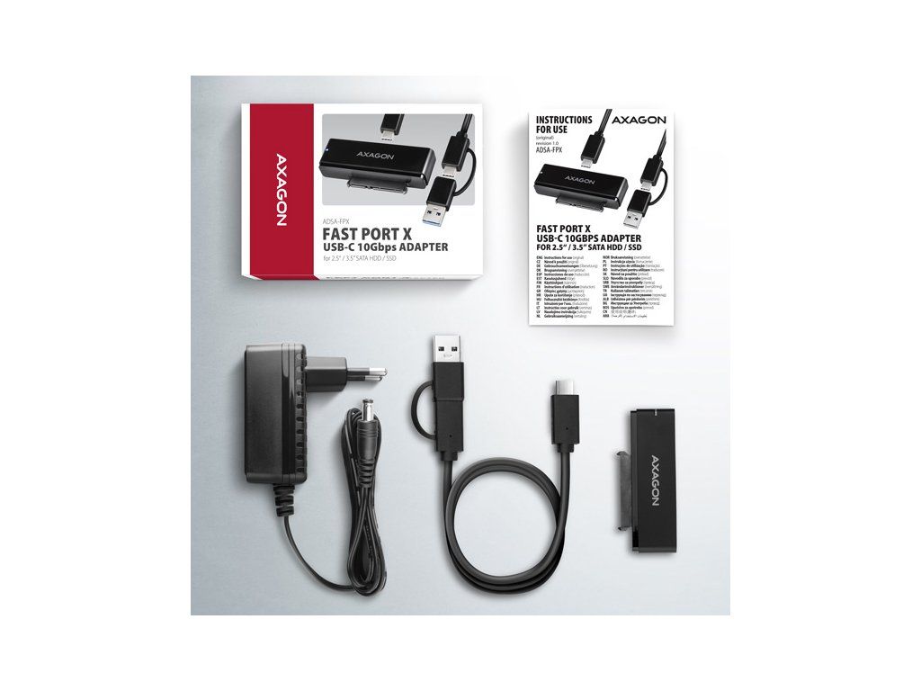 AXAGON ADSA-FPX, USB-C 10Gbps - SATA 6G, 2.5"/3.5" SSD/HDD FAST PORT X adaptér, vč. AC napáječe
