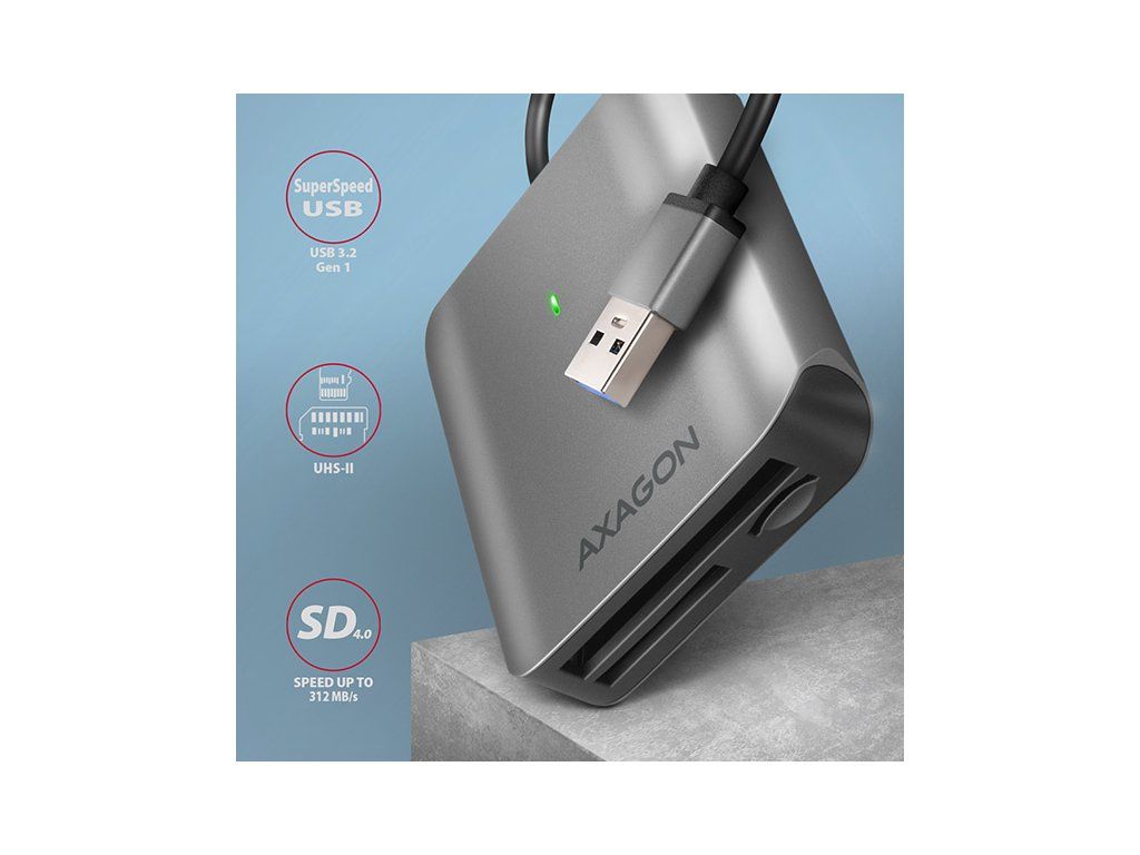 AXAGON CRE-S3, USB-A 3.2 Gen 1 - SUPERSPEED čtečka karet, 3-slot & lun SD/microSD/CF, podpora UHS-II
