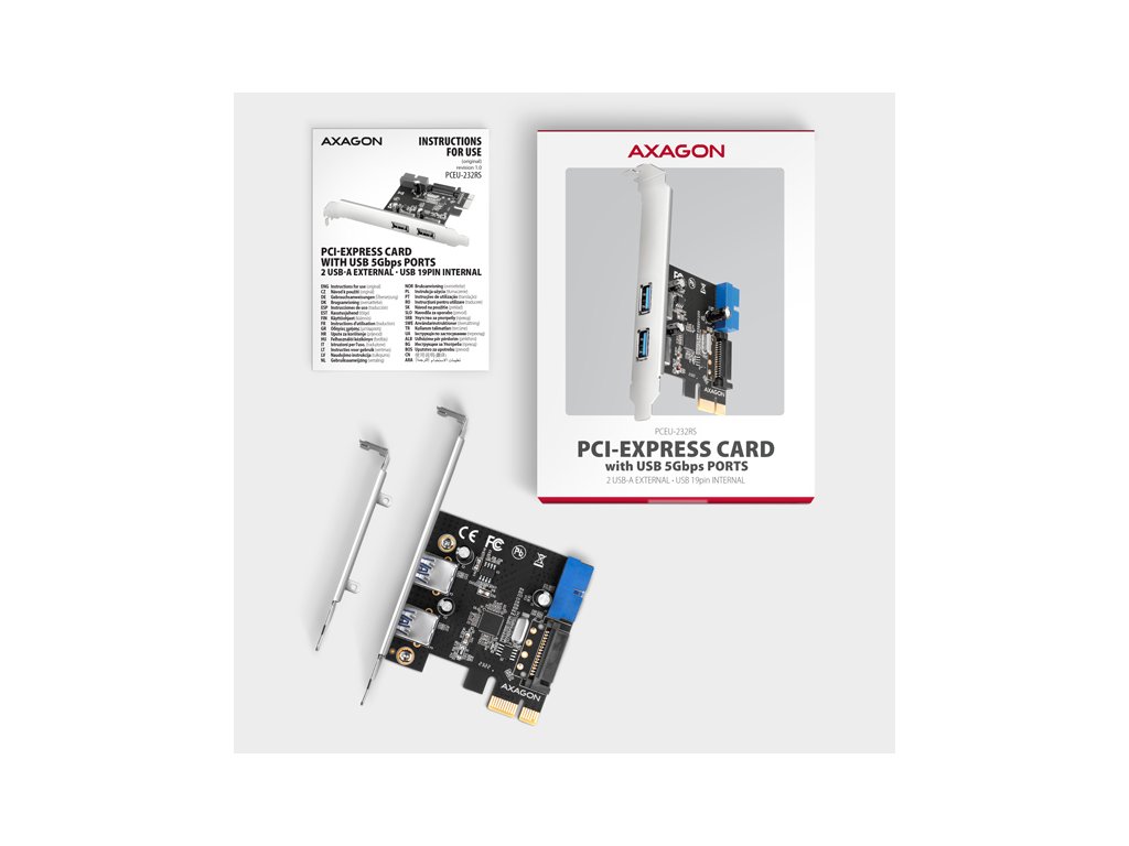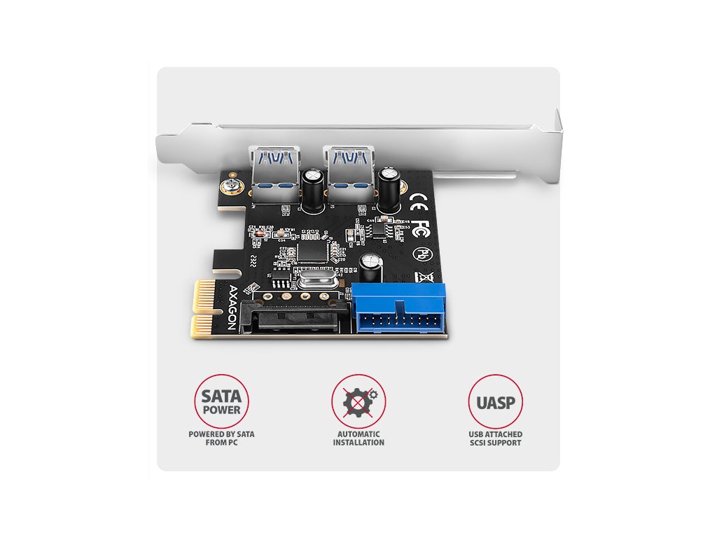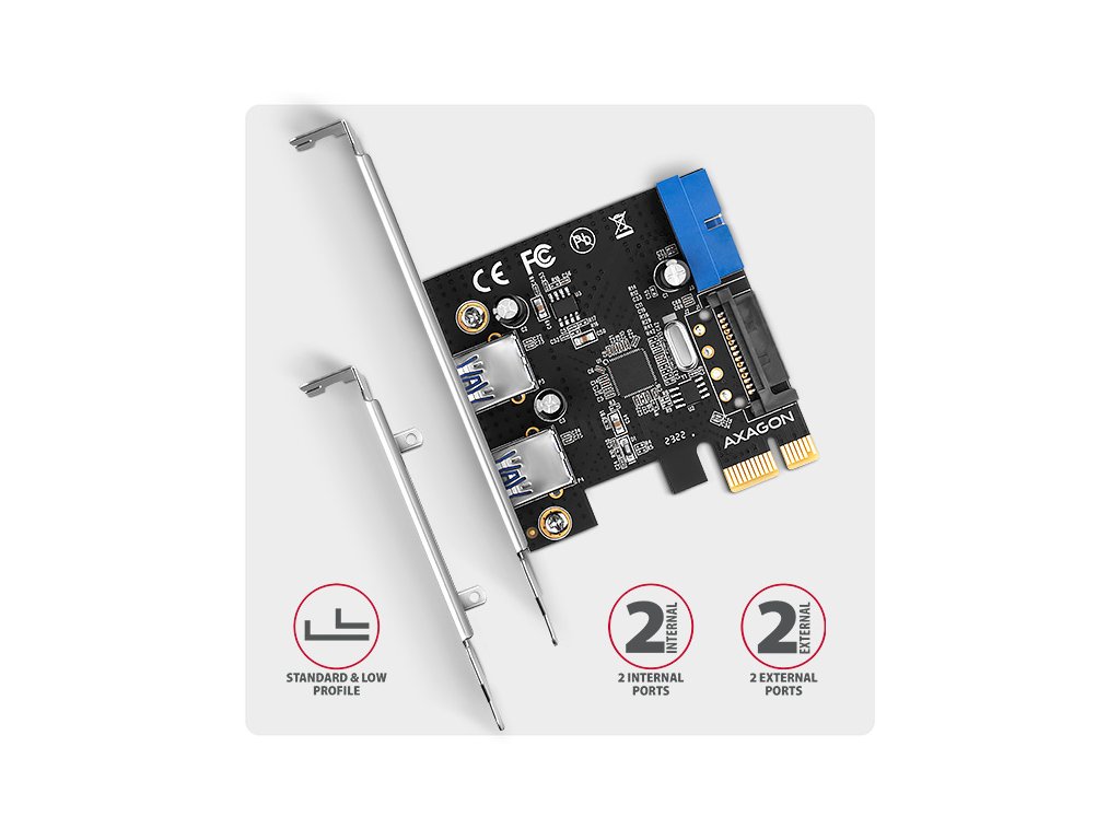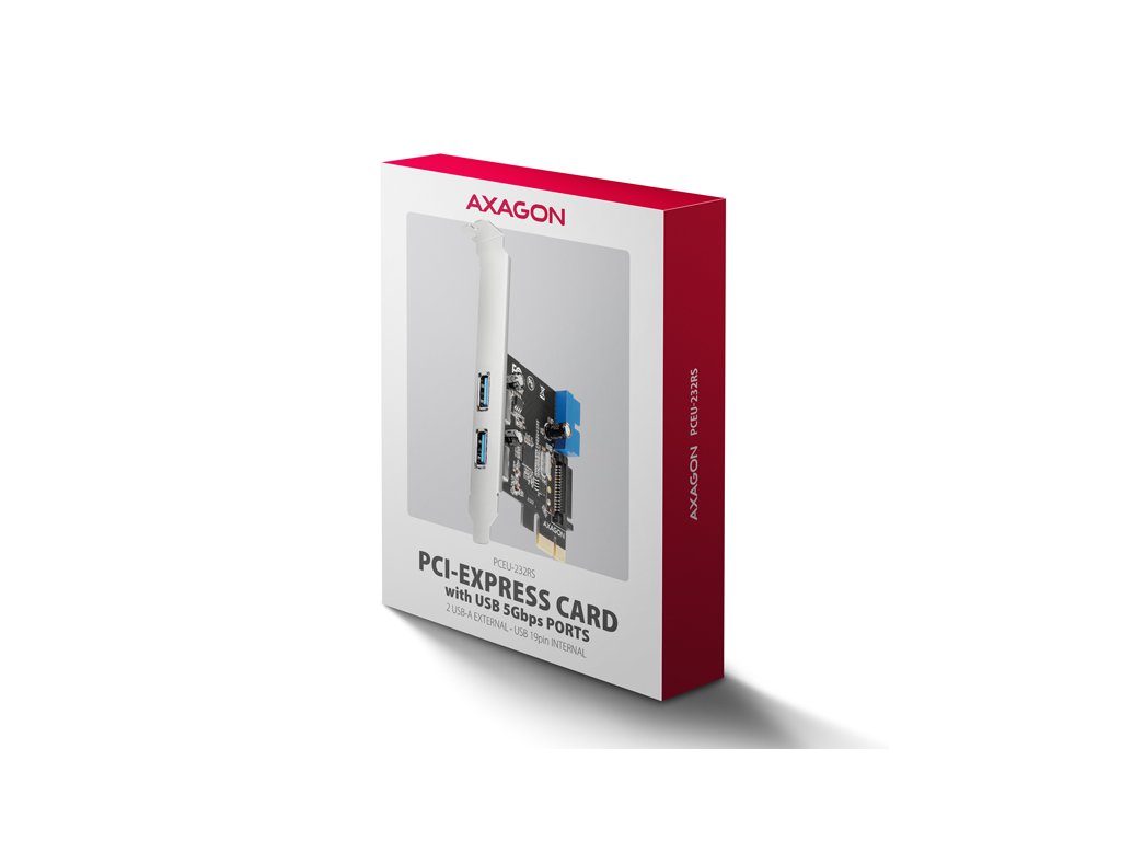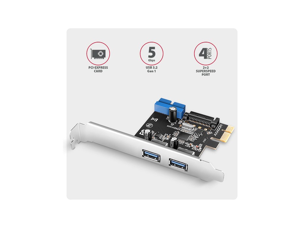AXAGON PCEU-232RS, PCIe řadič, 2+2x USB 5Gbps port, SATA napájení, Renesas PD720201, SP & LP