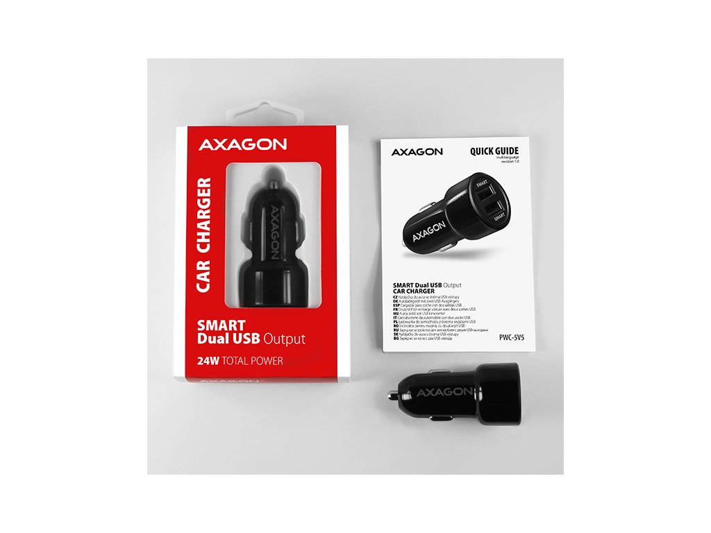 AXAGON PWC-5V5, SMART nabíječka do auta, 2x port 5V-2.4A + 2.4A, 24W