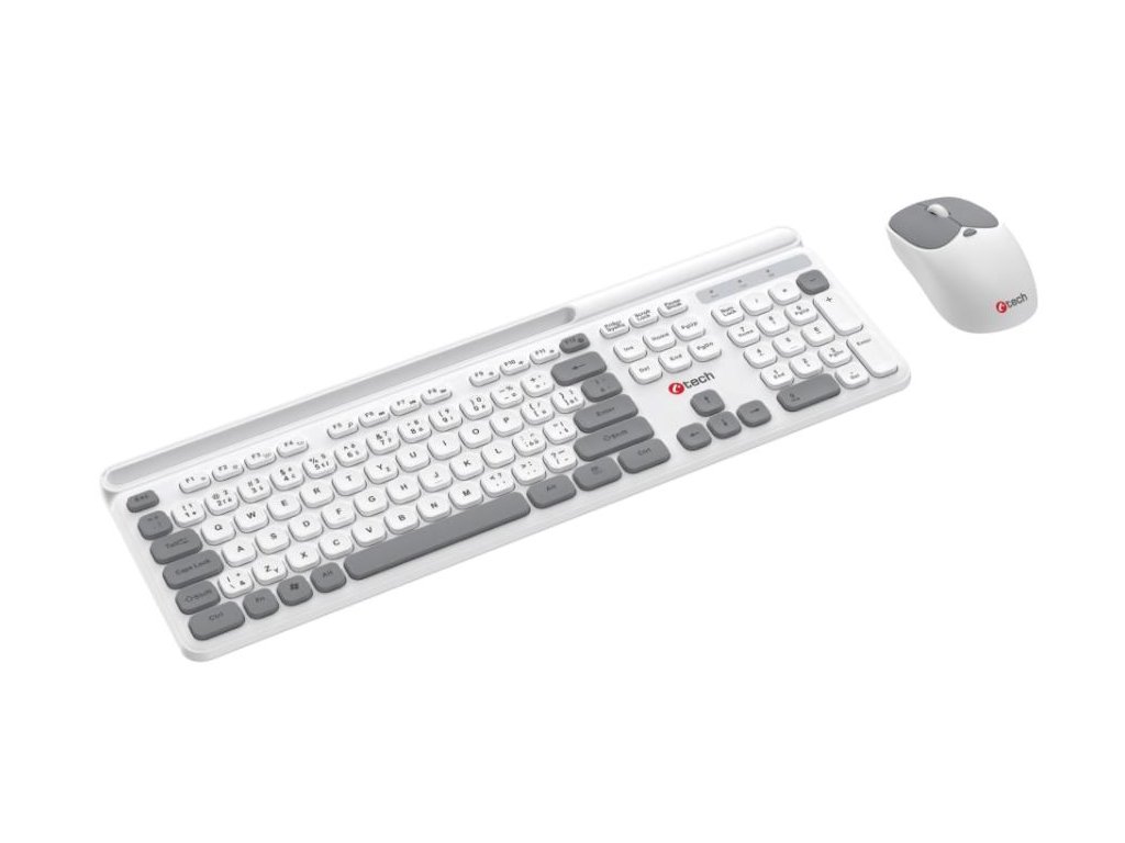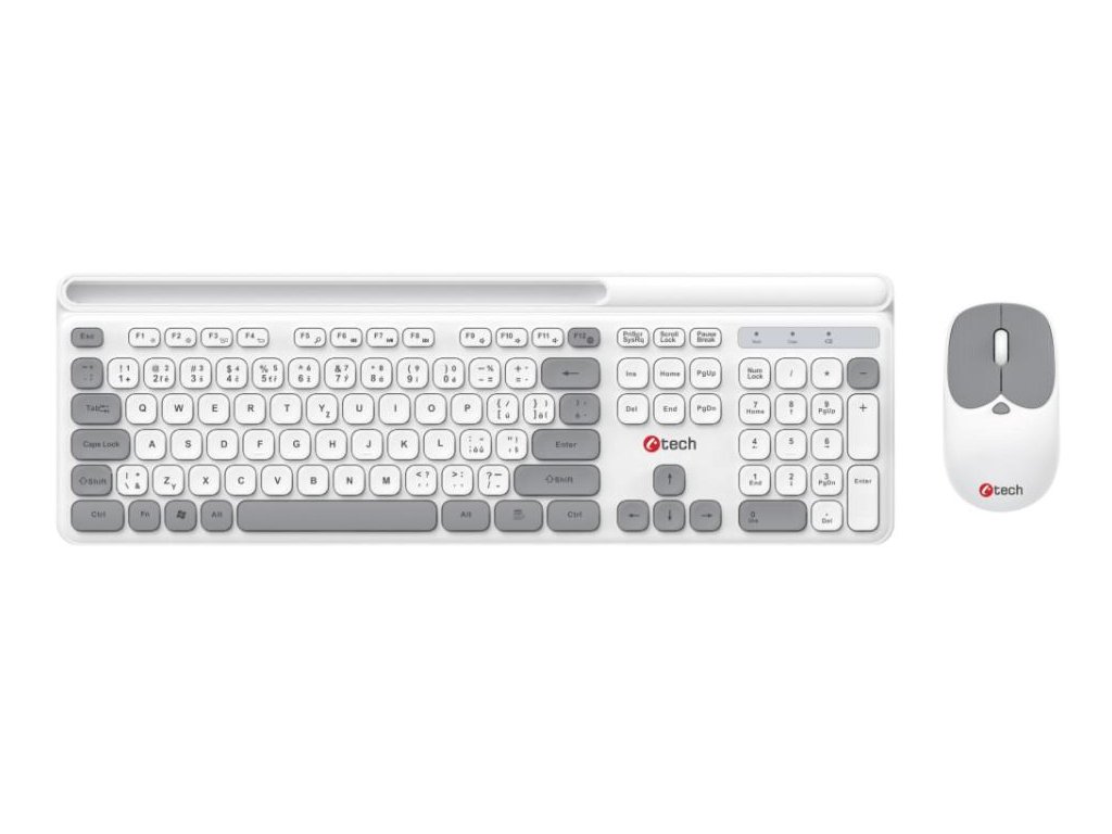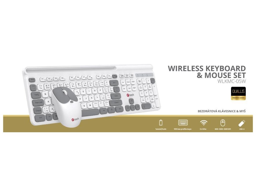 C-TECH klávesnice s myší WLKMC-05W, Bezdrátový set 2.4GHz, CZ, Bílá