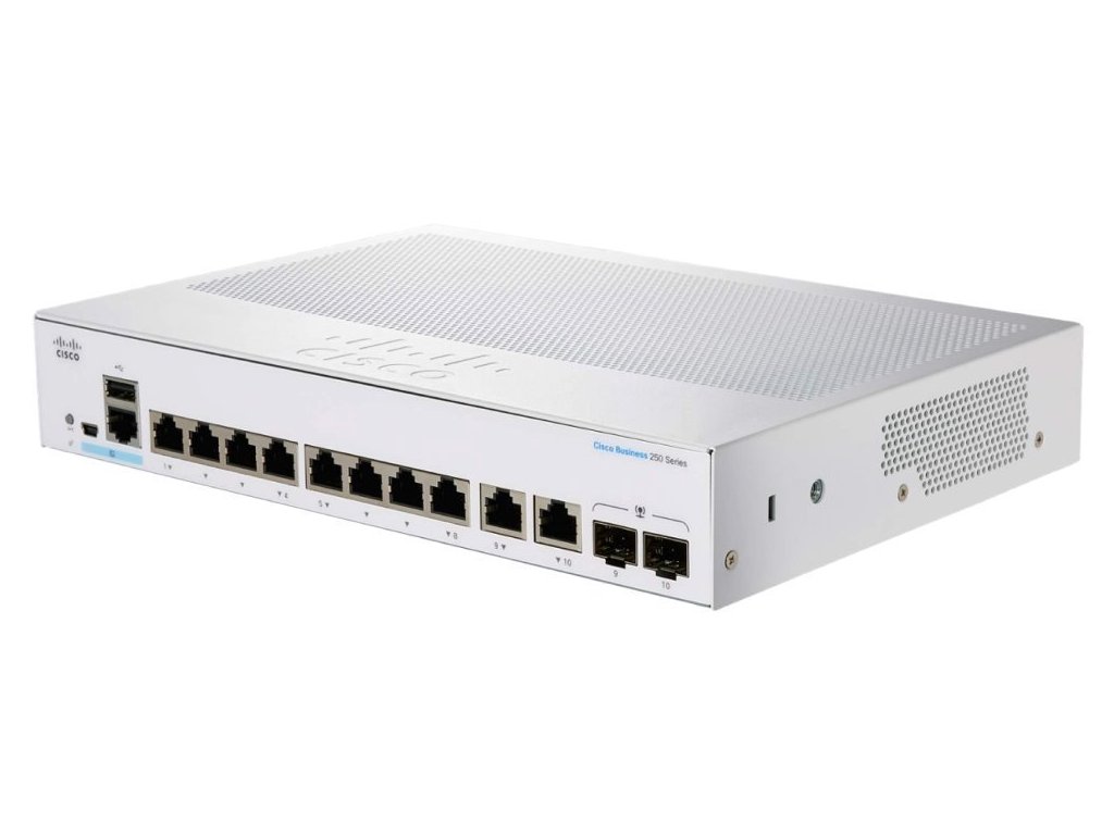 Cisco switch CBS250-8T-E-2G (8xGbE,2xGbE/SFP combo,fanless) - REFRESH