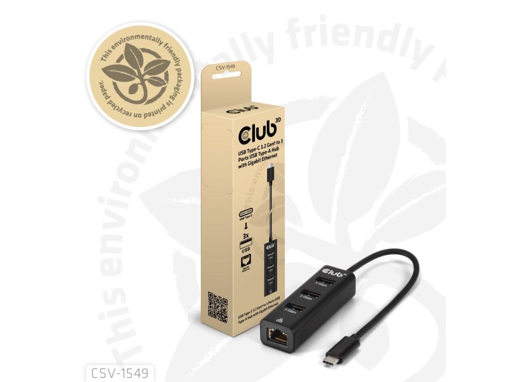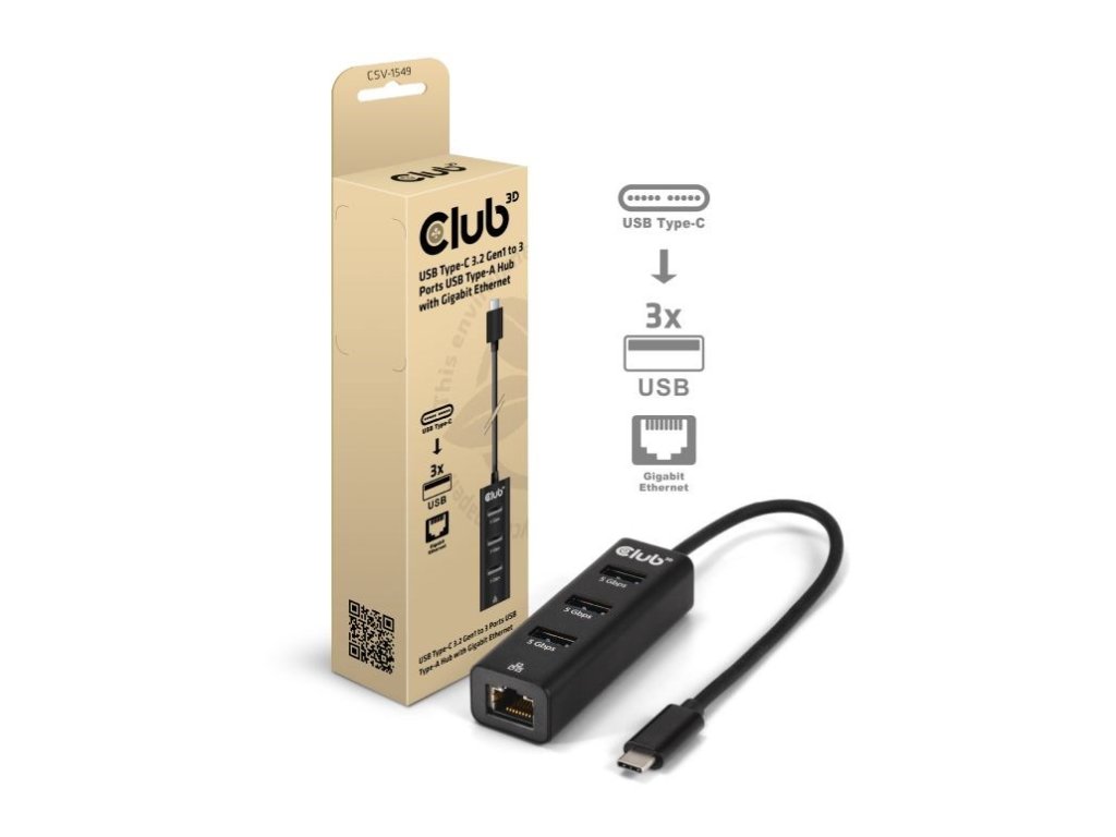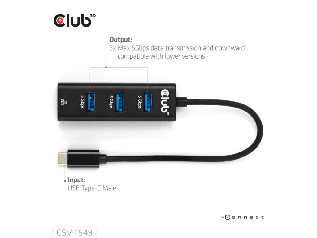 Club3D hub USB-C 3.2 na 3xUSB-A 3.2 + RJ45 1Gbps