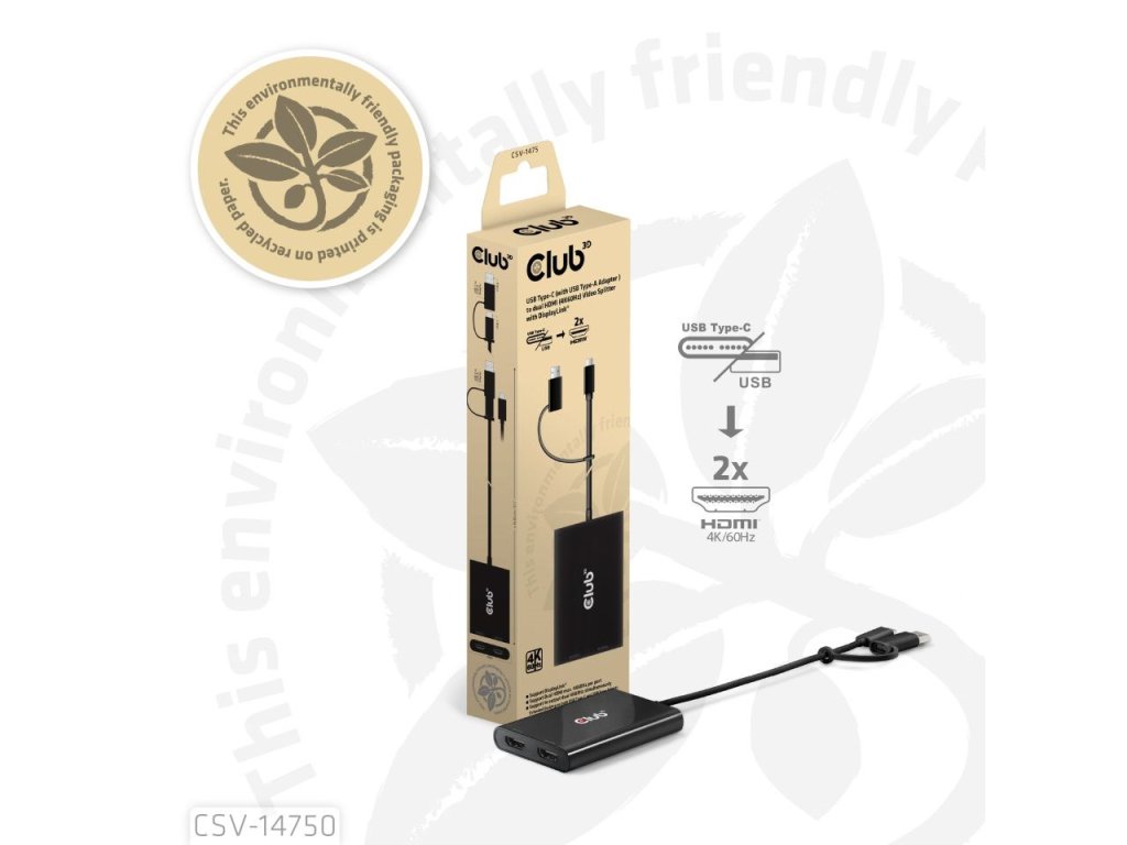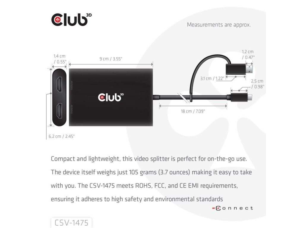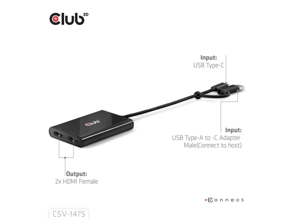 Club3D Video rozbočovač USB-C/A na 2xHDMI 2.0, Dual Monitor, 4K60Hz (M/F)