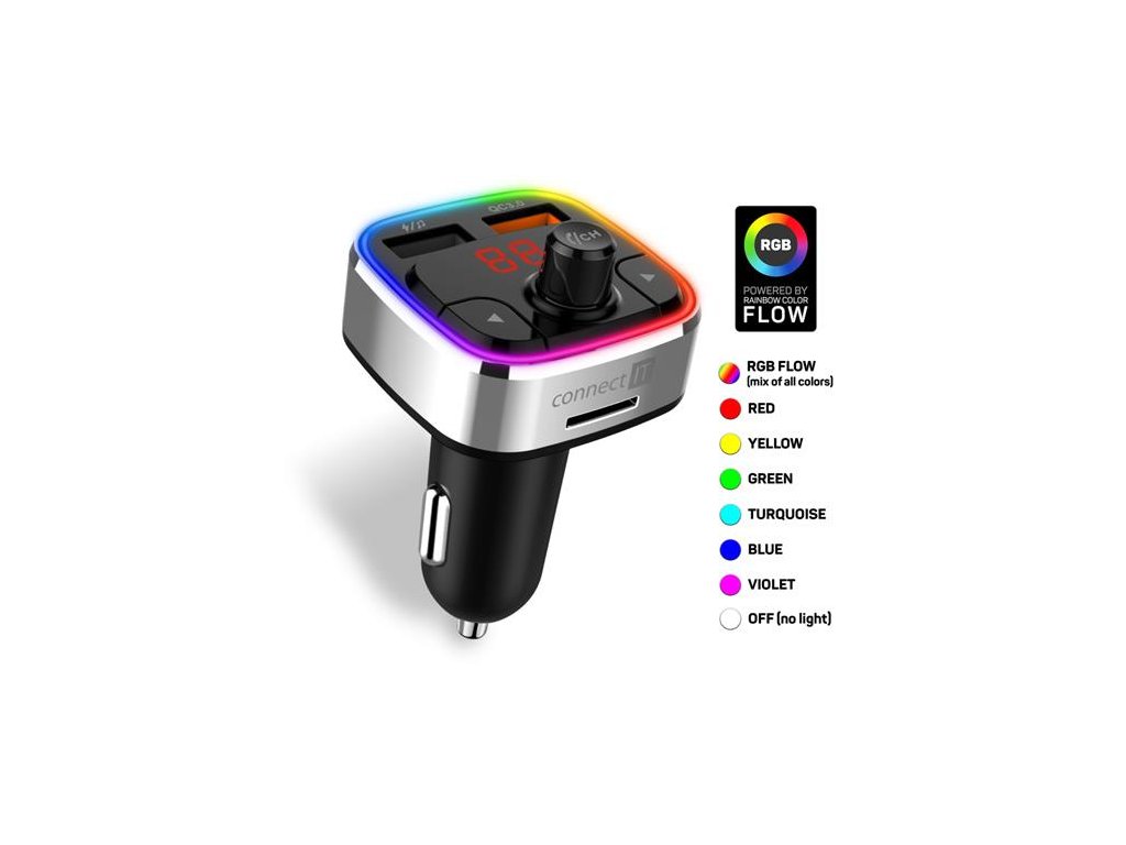 CONNECT IT CarRGB Bluetooth transmitter, 2xUSB+MicroSD, STŘÍBRNÝ