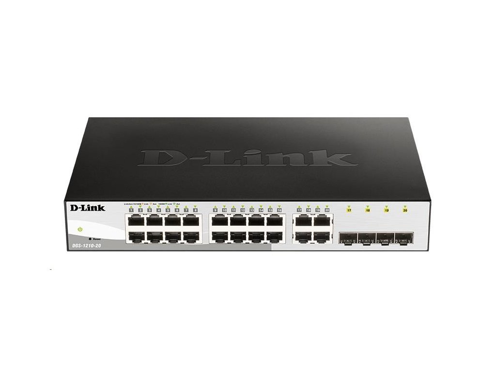 D-Link DGS-1210-20 20-port Gigabit Smart+ Switch, 16x GbE, 4x RJ45/SFP, fanless