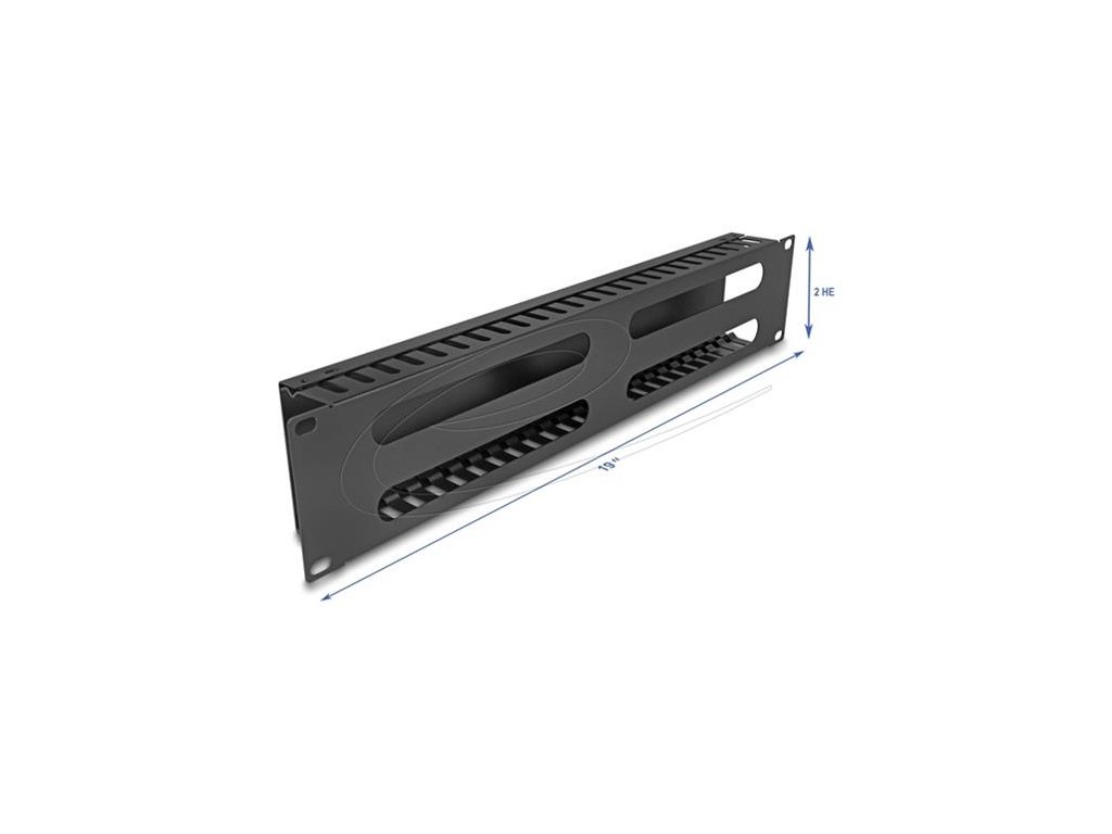 Delock 19” Management panel pro správu kabelů, se 4 otvory, 2U, kov, černý