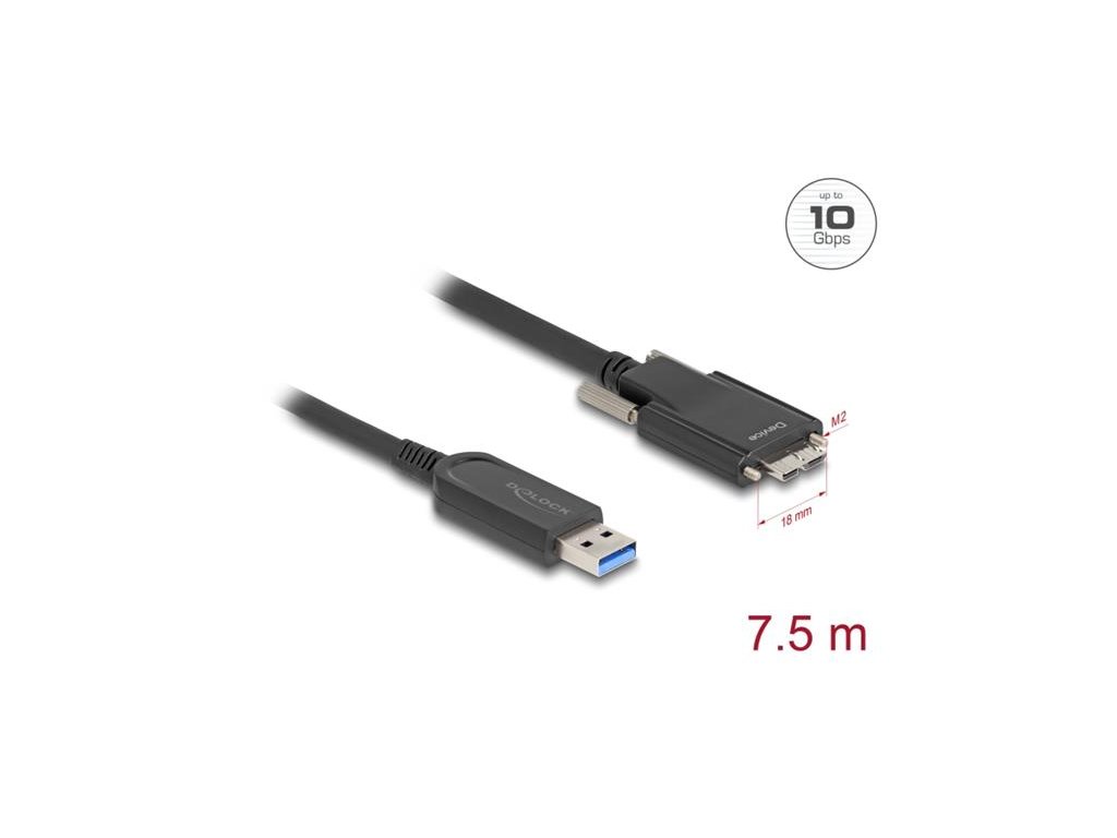 Delock Aktivní optický kabel USB 10 Gbps-A samec > USB 10 Gbps Typ Micro-B samec se šroubky 7,5 m