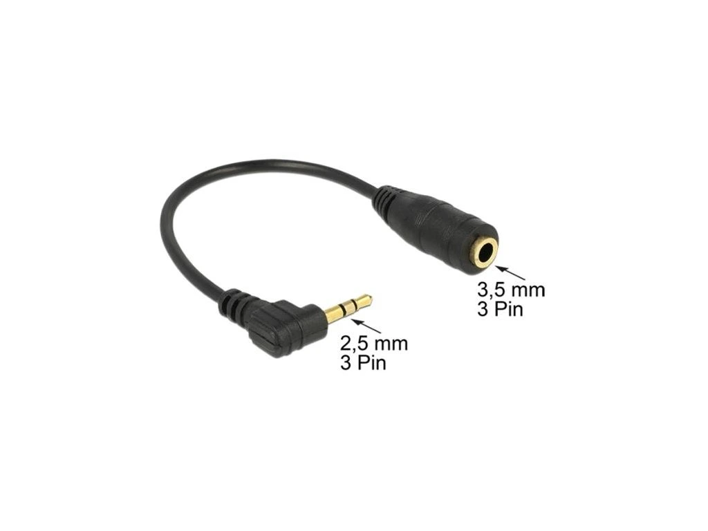 Delock audio stereo kabel 2,5 mm samec pravoúhlý na 3,5 mm samice,3 pin 14 cm