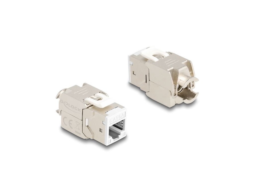 Delock Modul Keystone ze zásuvkového konektoru RJ45 na LSA Cat.6A, beznástrojový, bílá, sada 10 kusů