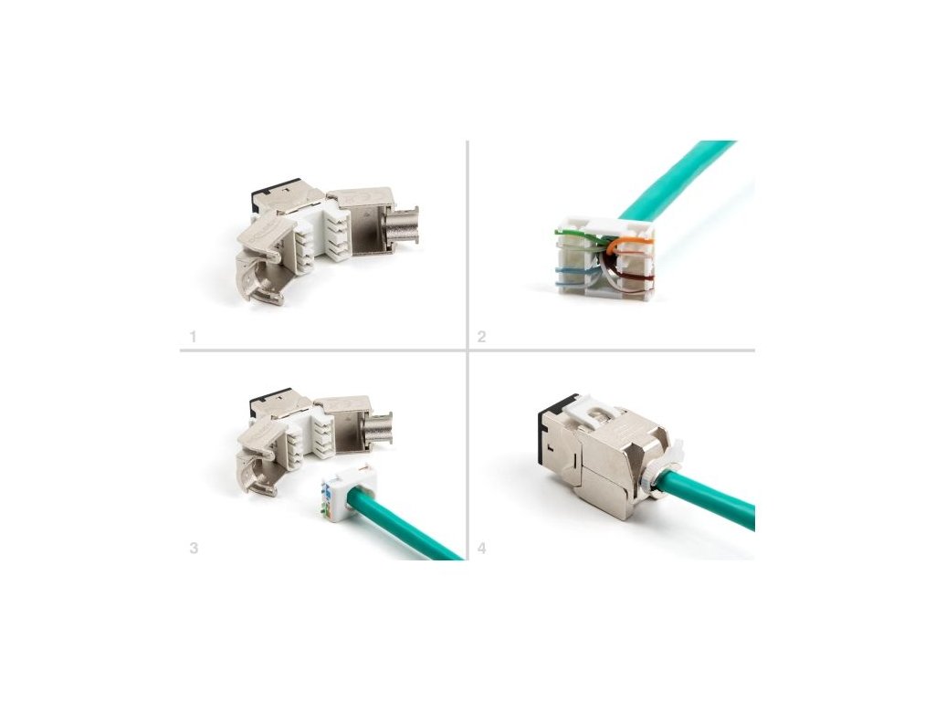 Delock Modul Keystone ze zásuvkového konektoru RJ45 na LSA Cat.6A, beznástrojový, černá, sada 10 kusů