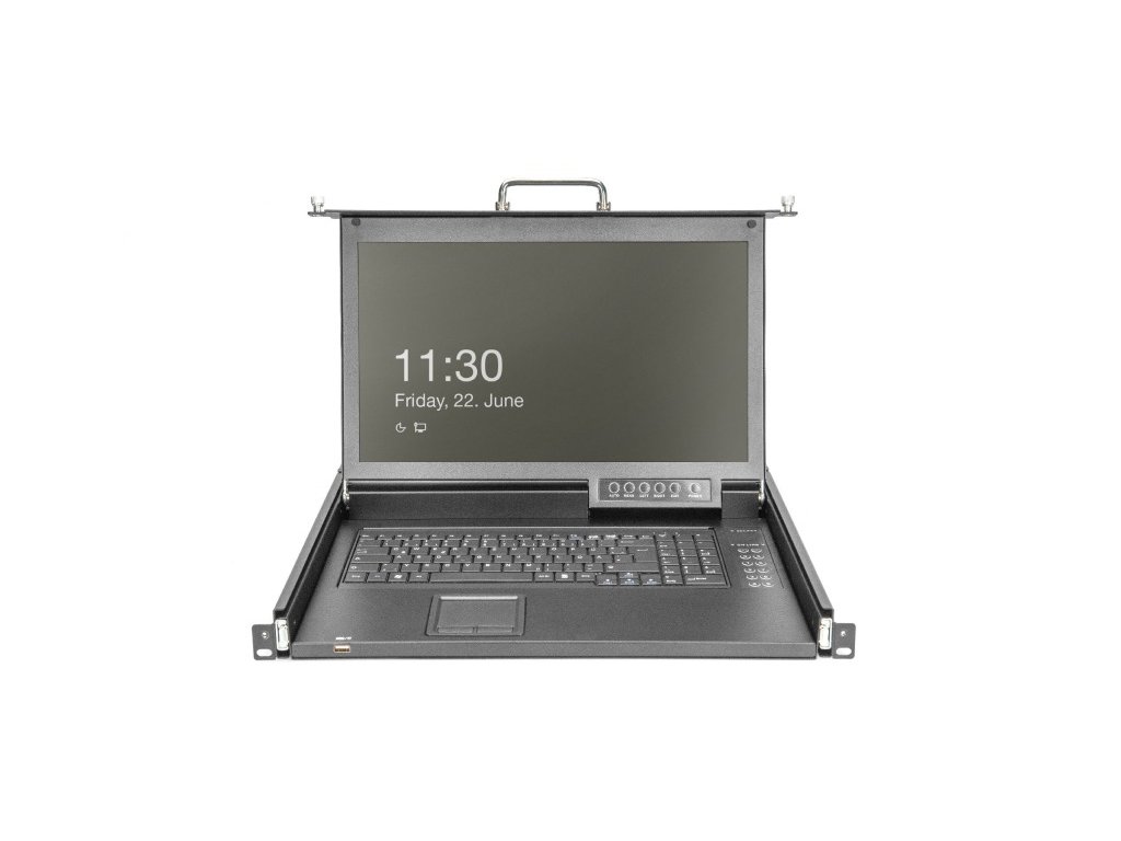 DIGITUS DS-72220-2GE 17" Modulární HD LCD TFT KVM konzole, 8 portů VGA KVM, německá klávesnice, černá (RAL 9005)