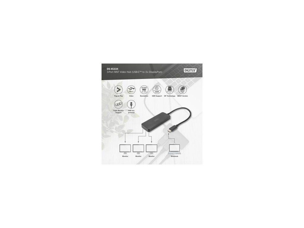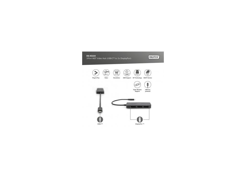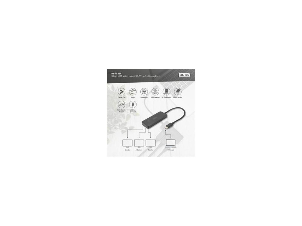 DIGITUS USB-C - 3x DP MST Video Hub DP 1.4, 4K/60Hz