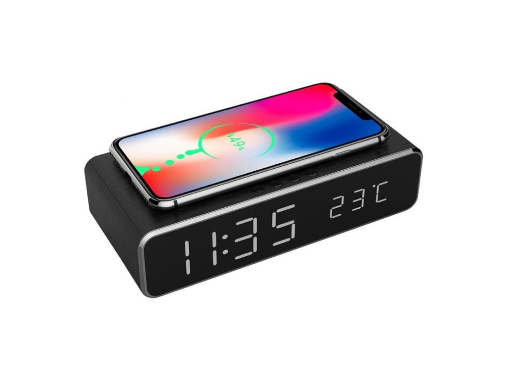Gembird Bezdrátová QI nabíječka s digitálním budíkem a teploměrem, 5W, černá