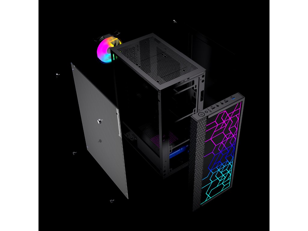 Gembird Computer Fornax 2500 ARGB/Midi Tower/Transpar./Černá