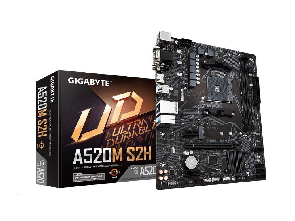 GIGABYTE MB Sc AM4 A520M S2H, AMD A520, 2xDDR4, 1xHDMI, 1xDVI, 1xVGA, mATX