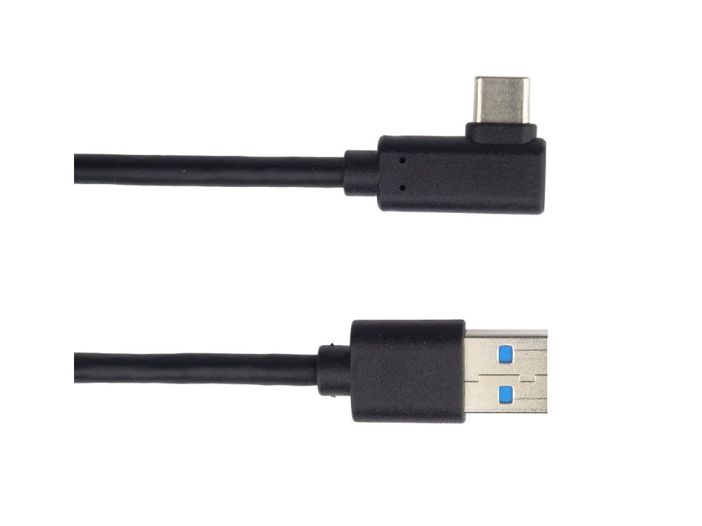 Kabel USB typ C/M - USB 3.0 A/M zahnutý konektor 90°, 1 m