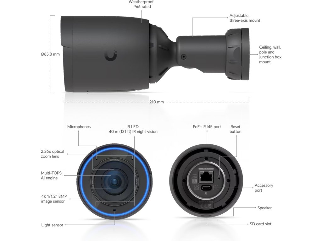 Kamera Ubiquiti Networks G6 Pro Bullet IP, venkovní, 8MP, Černá