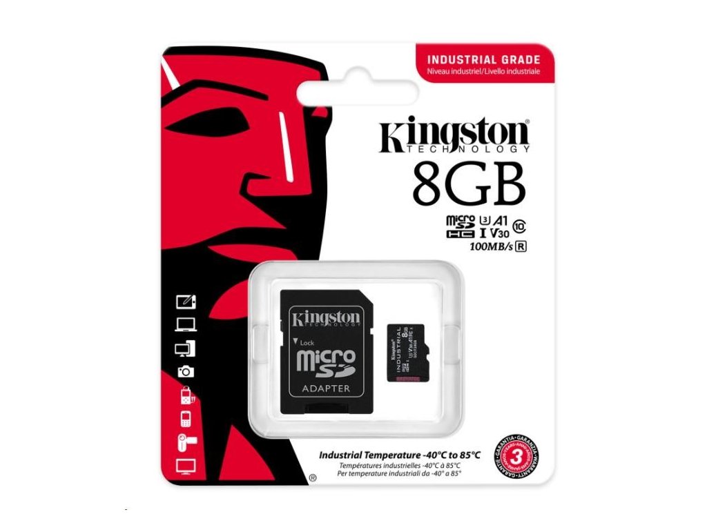 Kingston MicroSDHC karta 8GB Industrial C10 A1 pSLC Card + SD Adapter