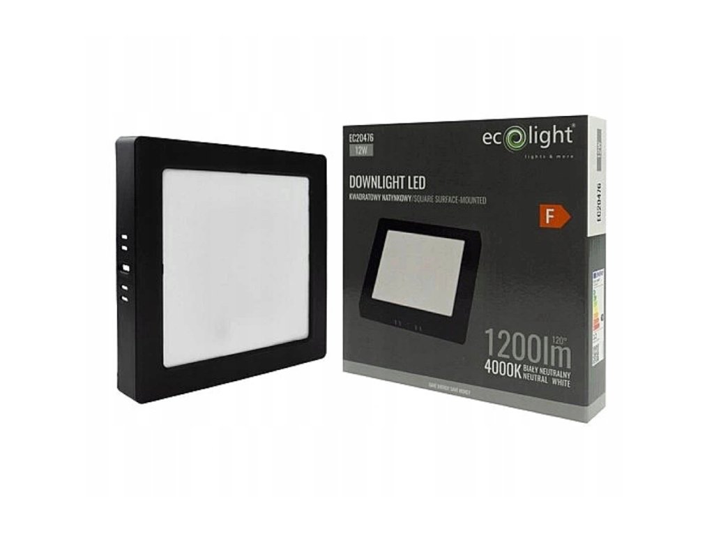 LED přisazený stropní panel – čtverec, 12 W, 1200 lm, černý