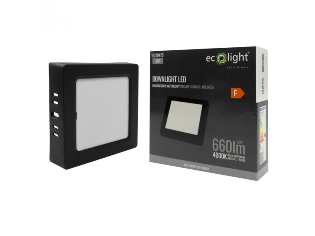 LED přisazený stropní panel – čtverec, 6 W, 660 lm, černý