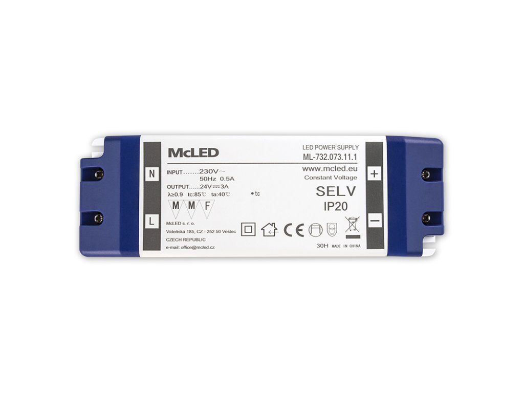 MCLED Napaječ LED 24V/3A ML-732.073.11.1 IP20, plastové provedení se svorkovnicí