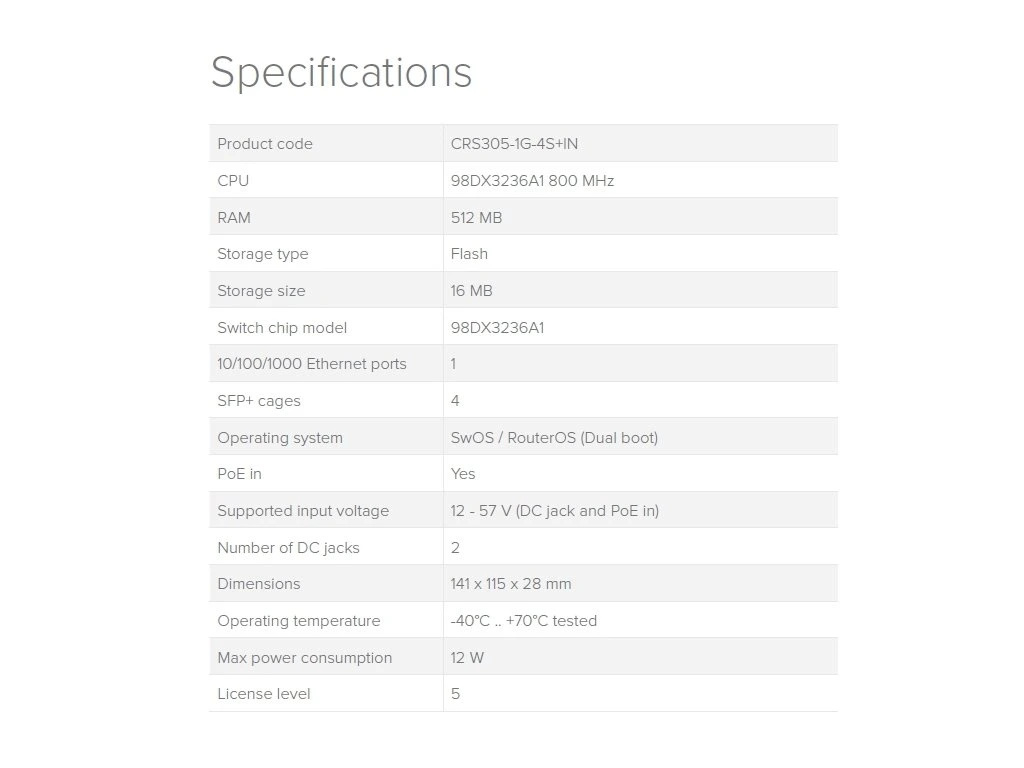 MikroTik Cloud Router Switch CRS305-1G-4S+IN, Dual Boot (SwitchOS, RouterOS)