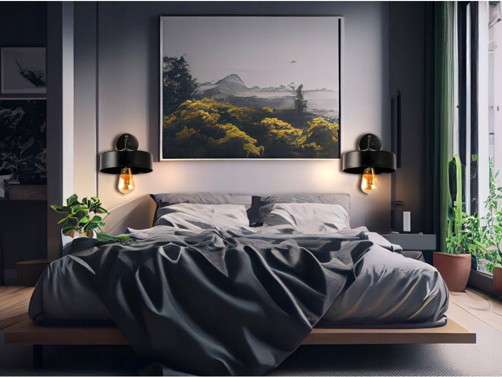 Dřevěná nástěnná lampa, černá E27, dřevěná nástěnná lampa
